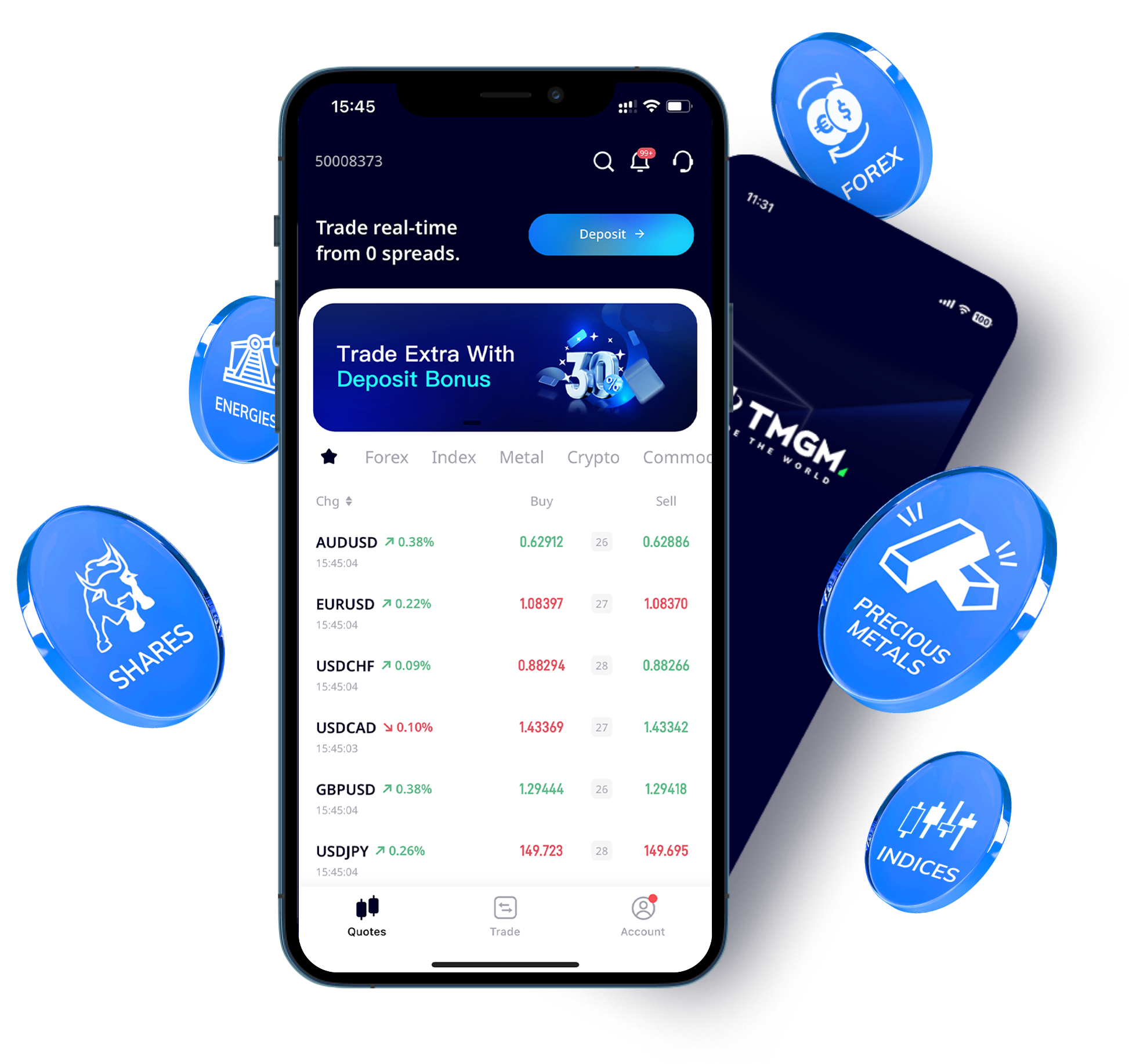Trade Forex, Indices, Metals, Energies, Stocks, Crypto and more — all with TMGM.